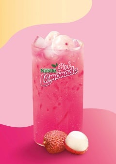 2Add Lemonade Mixture: Pour the prepared NESTLÉ® Pink Lemonade mixture into the serving glass, over the ice, rose syrup, and condensed milk. Serve: Your Luscious Lychee Milk Drink is now ready to be served. Enjoy this refreshing and creamy beverage!